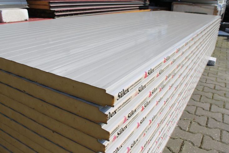 - الألواح: تصنع ألواح الساندويتش بانل من طبقتين خارجيتين من المعدن (الألمنيوم أو الحديد المجلفن) وطبقة داخلية من مادة عازلة مثل البولي يوريثان أو البوليسترين.