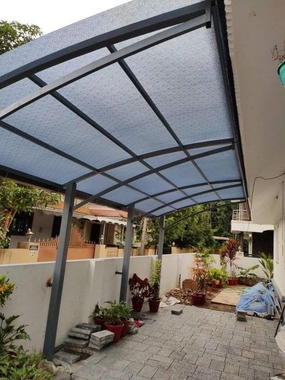 - مظلات لكسان منحنية: تتميز بشكلها الأنيق والعصري، وتستخدم في المداخل والمواقف.